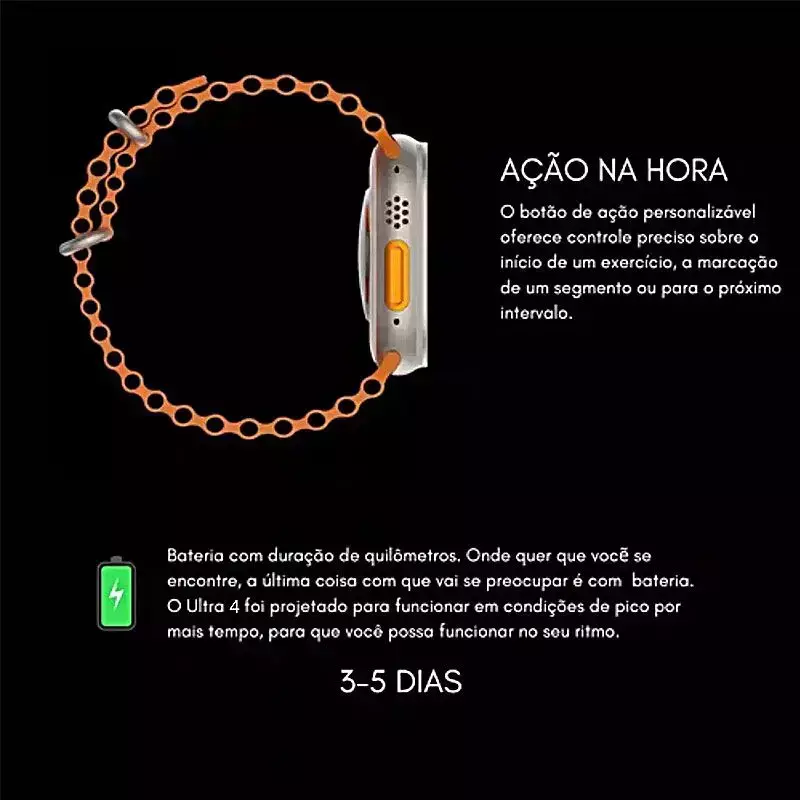 O Ultra 4 Plus AMOLED é a escolha perfeita para quem busca um smartwatch completo, moderno e com excelente custo-benefício, garantindo praticidade, conectividade e um acompanhamento detalhado da saúde e bem-estar.